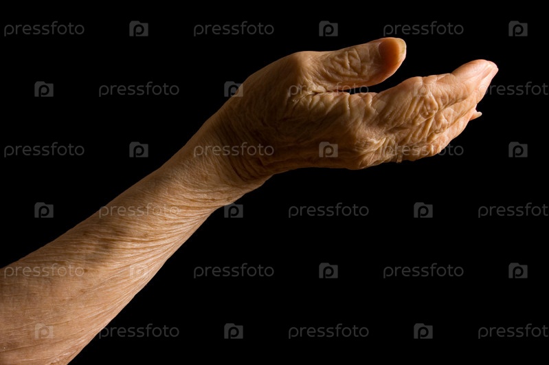 Рука пожилого человека на черном фоне