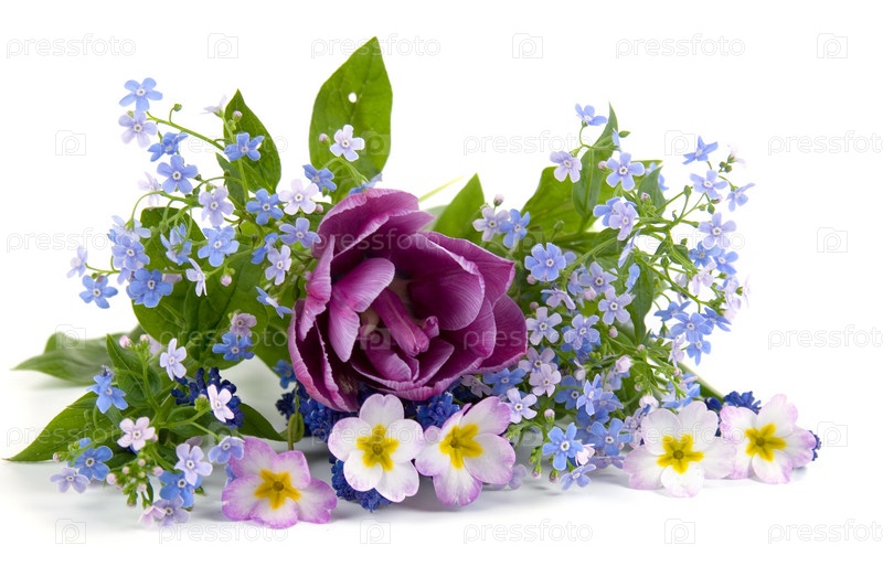 Букет из весенних цветов на белом фоне