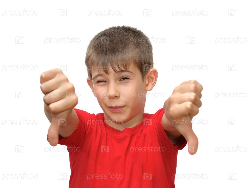 Мальчик высказывает свое неодобрение. Изолирован на белом фоне
