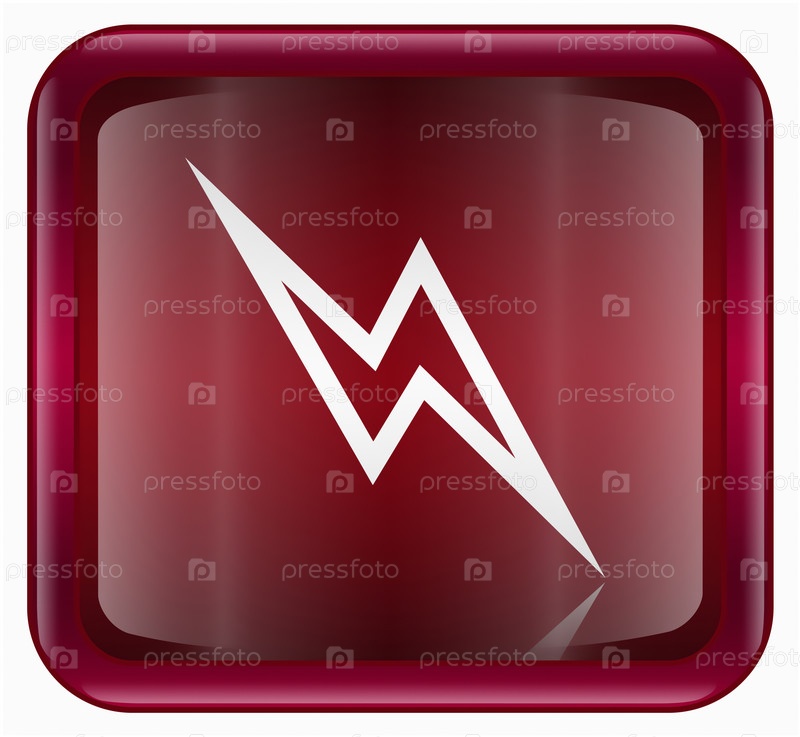 темно-красная веб-иконка с изображением молнии, изолировано на белом фоне