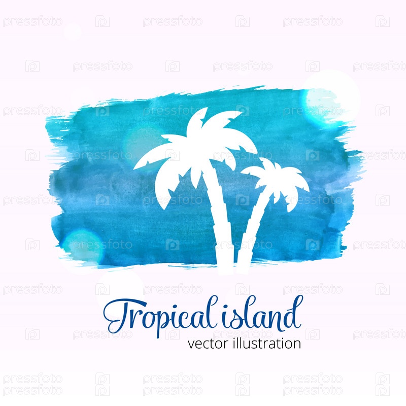Силуэт пальмы на голубом акварельном мазке