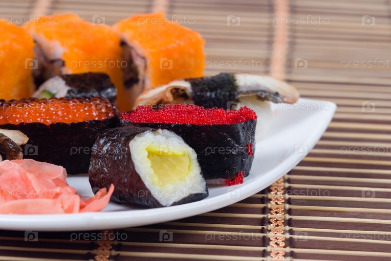 Традиционные японские суши и роллы крупным планом