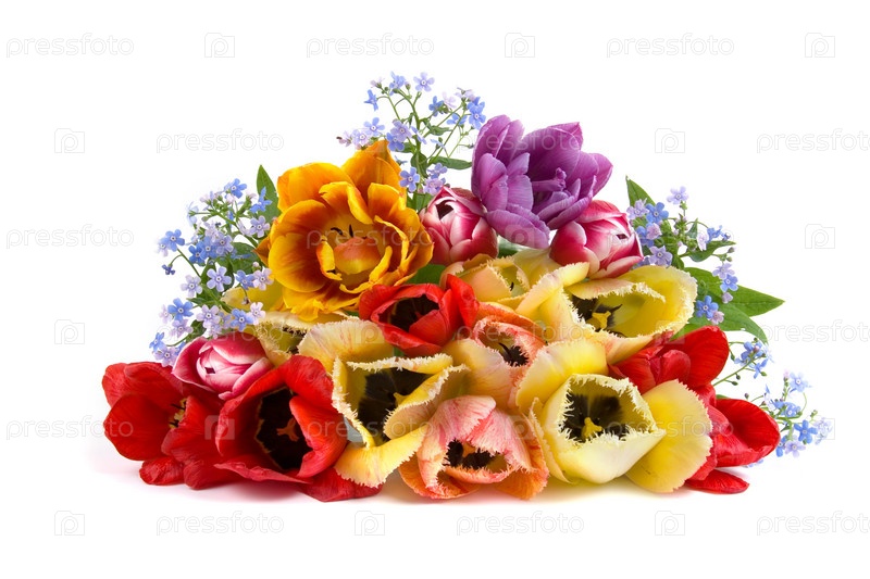 Букет из весенних цветов на белом фоне