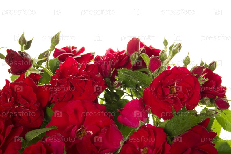 Красные розы крупным планом на белом фоне