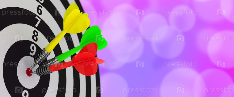 Три разноцветных дротика в центре мишени