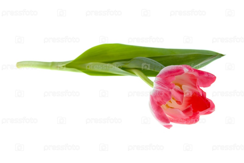 Розовый тюльпан на белом фоне