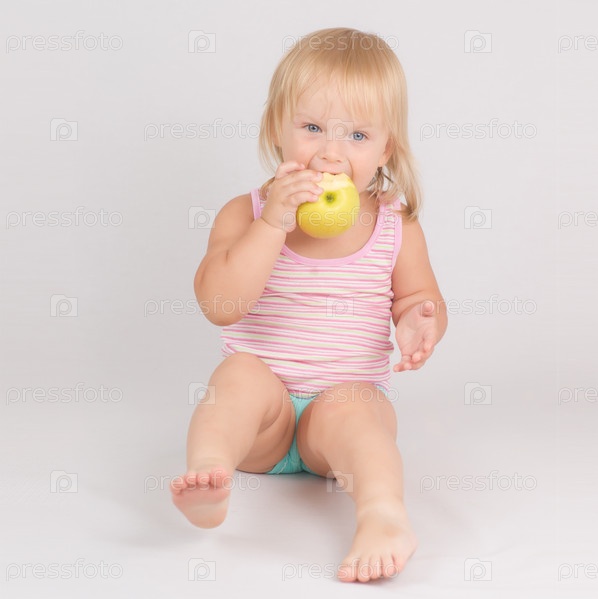 Маленькая девочка ест яблоко
