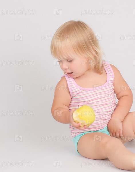 Маленькая девочка ест яблоко