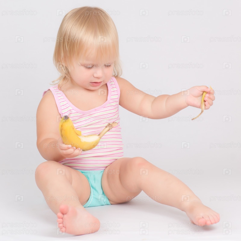Маленькая девочка чистит банан