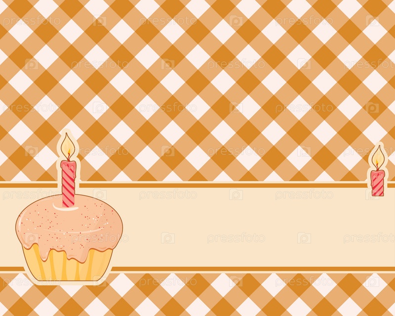 Клетчатый оранжевый фон, украшенный пирожным со свечкой