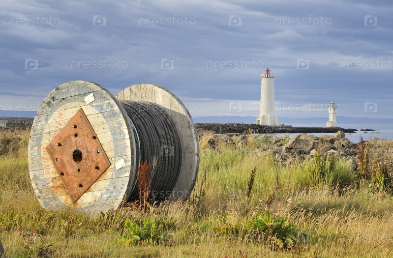 Моток кабеля на берегу моря в Исландии