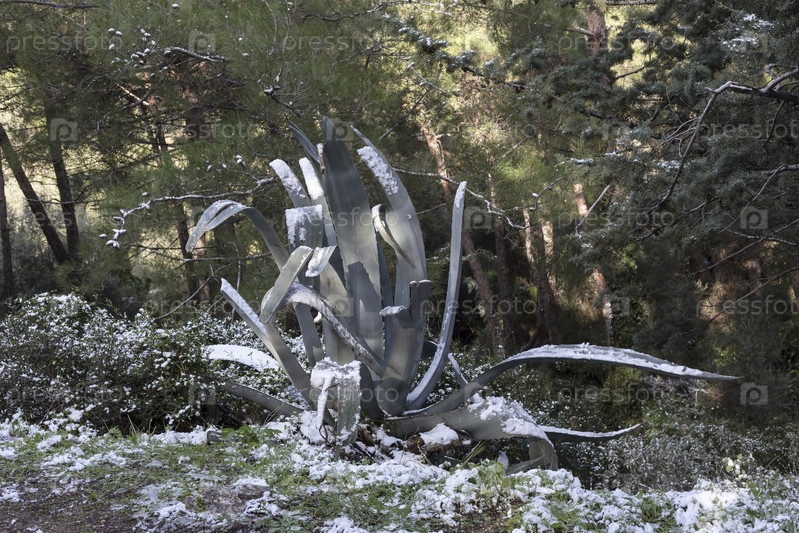 Заснеженная агава в лесу