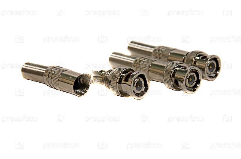 Разъемы для телевизионного кабеля на белом фоне