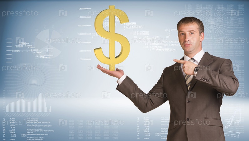 Бизнесмен держит знак доллара