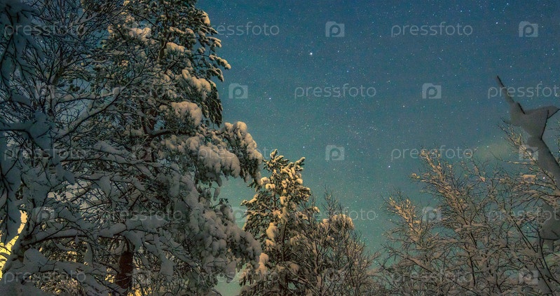 Звездное небо над зимним лесом