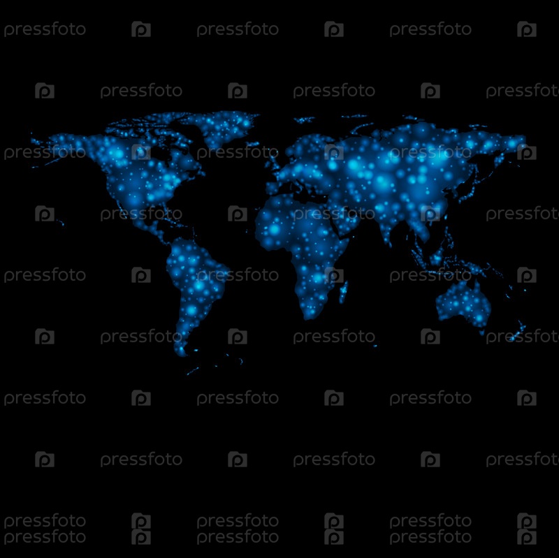 Абстрактный блестящие огни. Векторная карта мира