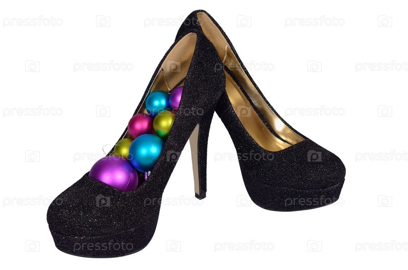 Черные женские туфли на белом фоне
