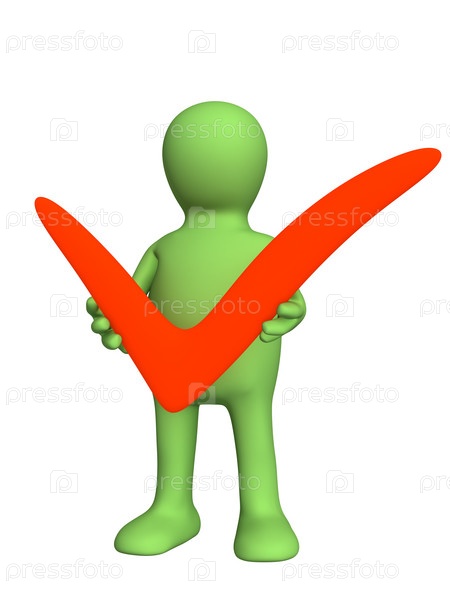 Человечек с красной галочкой в руках