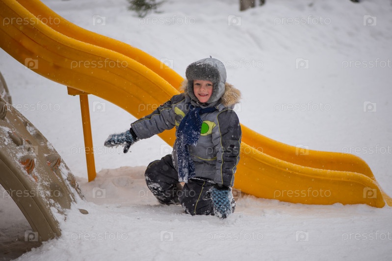 Счастливый ребенок на зимней игровой площадке