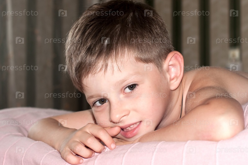 Маленький мальчик лежит на кровати