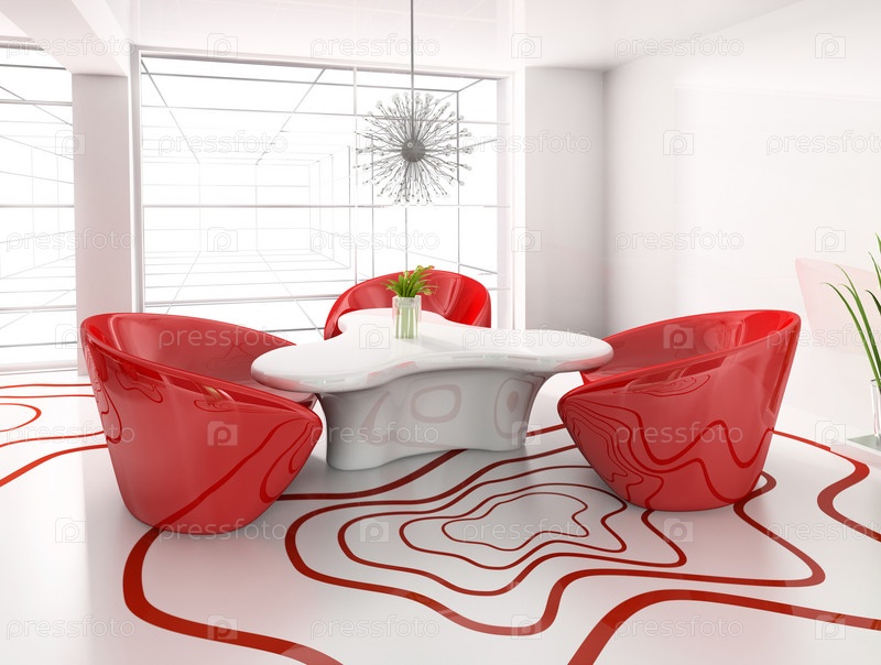 Обеденный стол в современном кафе 3d image