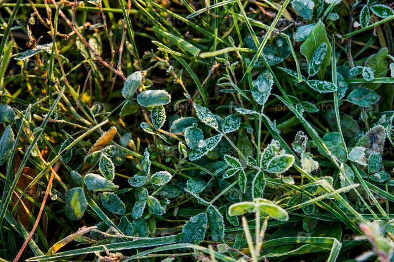 Красочные осенние листья, покрытые инеем