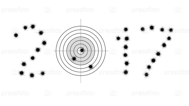 Пулевые отверстия и цель в форме цифры 2017