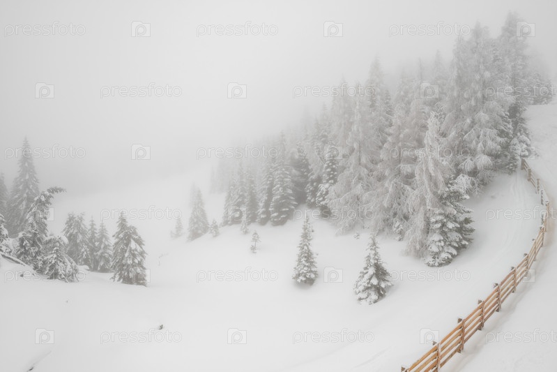 Снегопад в горном лесу