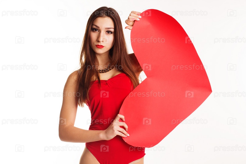 Красивая девушка держит бумажное сердце