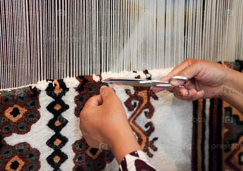 Женщина работает на ткацком станке