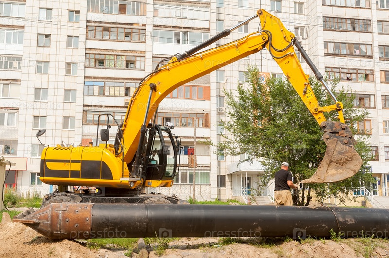 Экскаватор у жилого дома