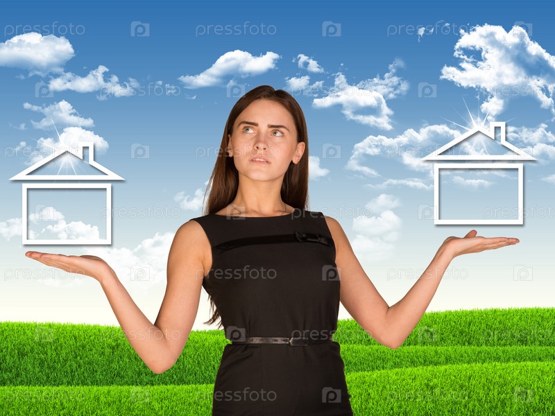 Бизнес-леди с иконками домов