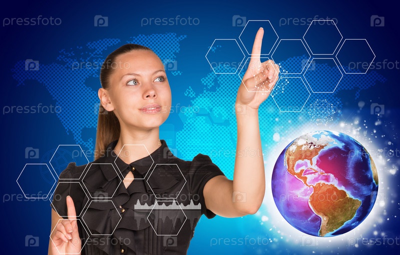 Бизнес-леди с виртуальным экраном