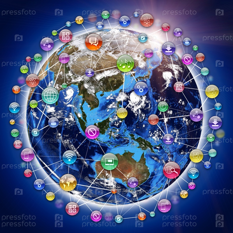 Земля, окруженная иконками