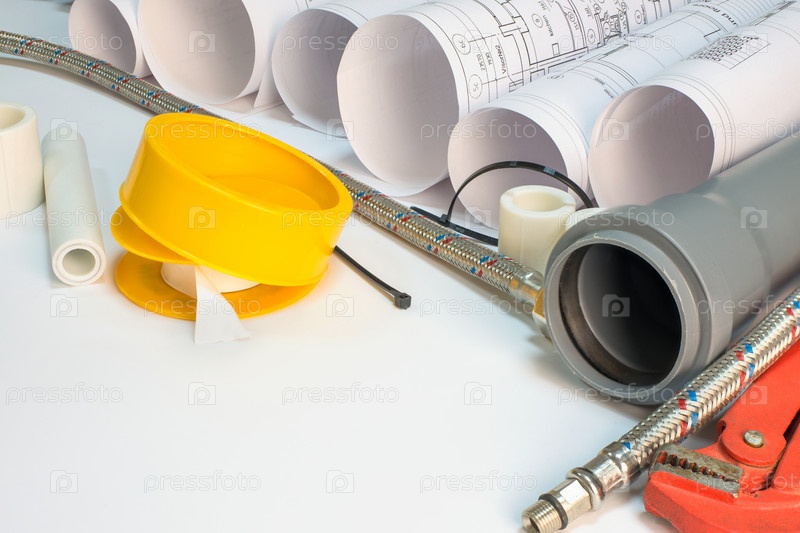 Строительные чертежи и инструменты на столе