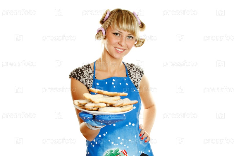 Девушка с тарелкой имбирных пряников в руках