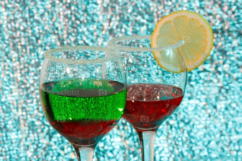 Бокалы с коктейлями на блестящем фоне