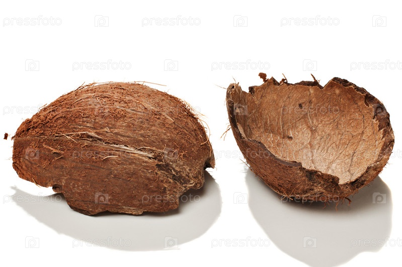 Скорлупа кокосового ореха на белом фоне