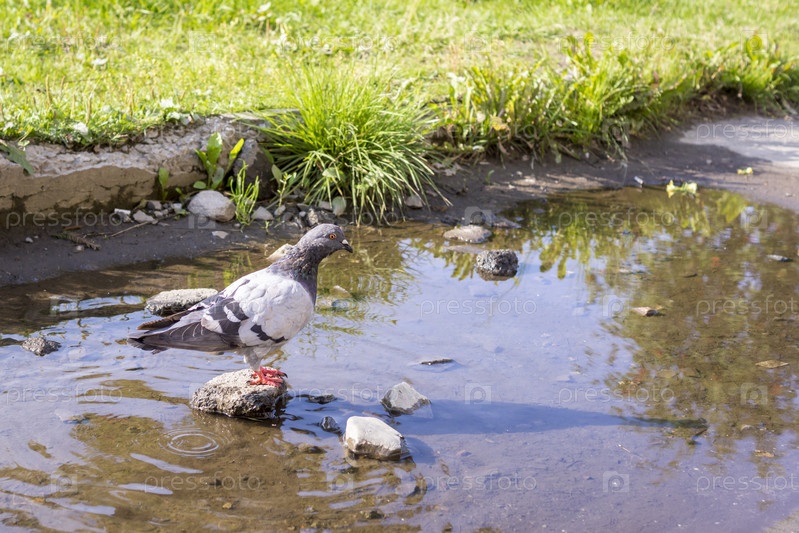 Городской голубь на водопое