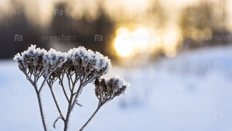 холодный зимний закат на природе