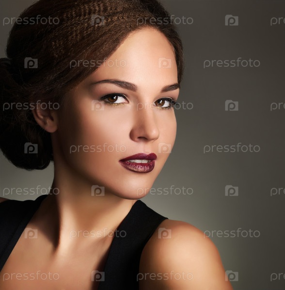 Молодая женщина с красивым макияжем и прической в стиле ретро
