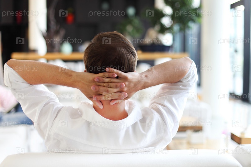 Молодой человек расслабляется, лежа на диване