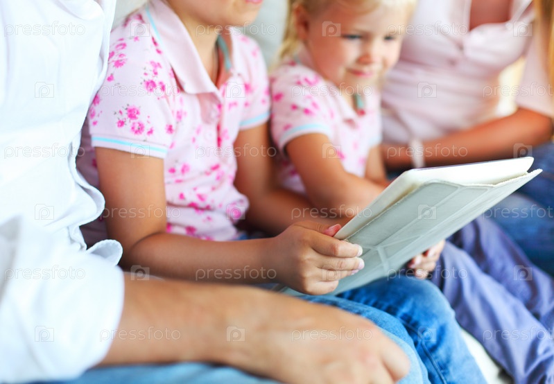 Счастливая семья с планшетным компьютером
