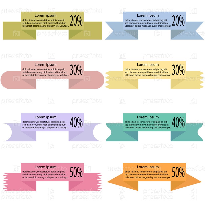 Цветные ленты и баннеры для текста на белом фоне. Векторные иллюстрации