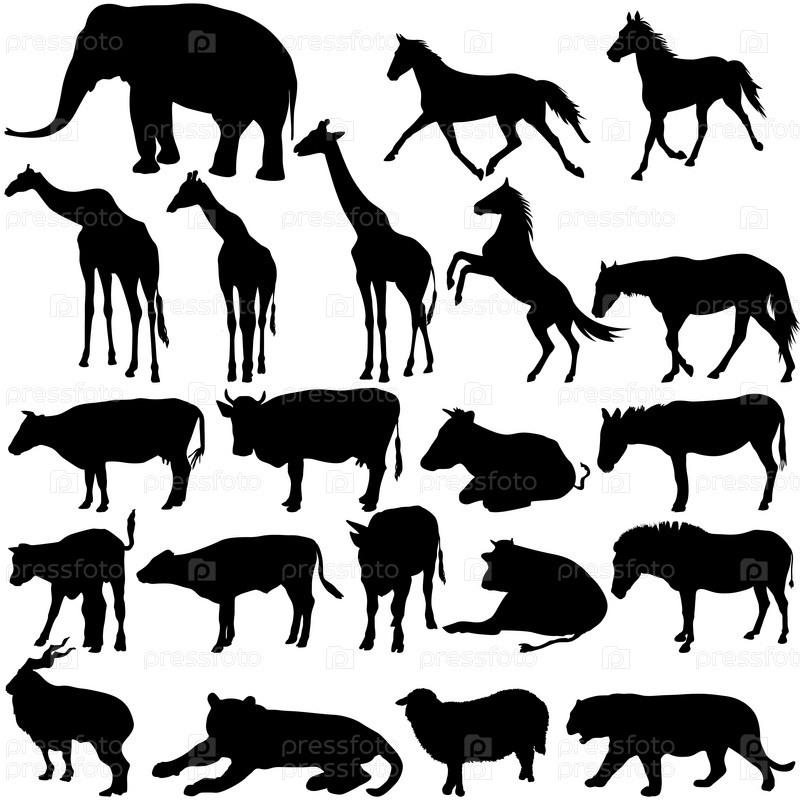 Набор силуэтов животных на белом фоне. Векторные иллюстрации