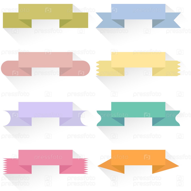 Цветные ленты и баннеры для текста на белом фоне. Векторные иллюстрации
