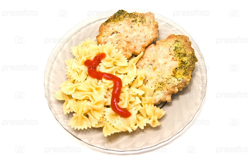Паста с мясом крупным планом на белом фоне