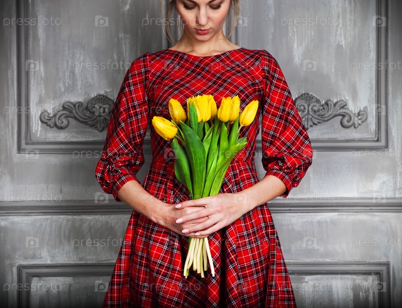 Женщина с букетом тюльпанов