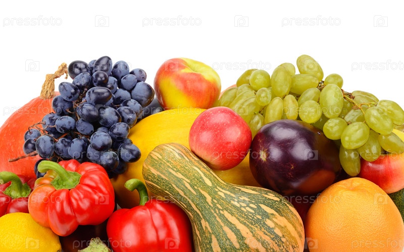 Фрукты и овощи, изолированные на белом фоне