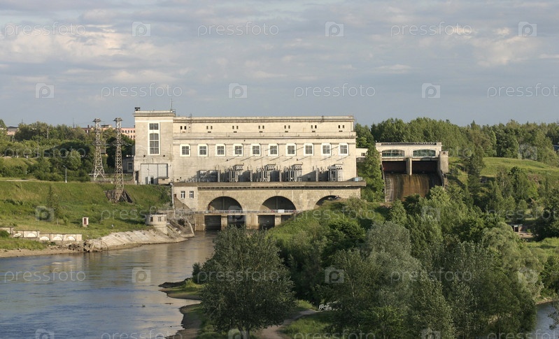 Нарвская гидроэлектростанция на реке Нарове в Ленинградской области на границе с Эстонией
